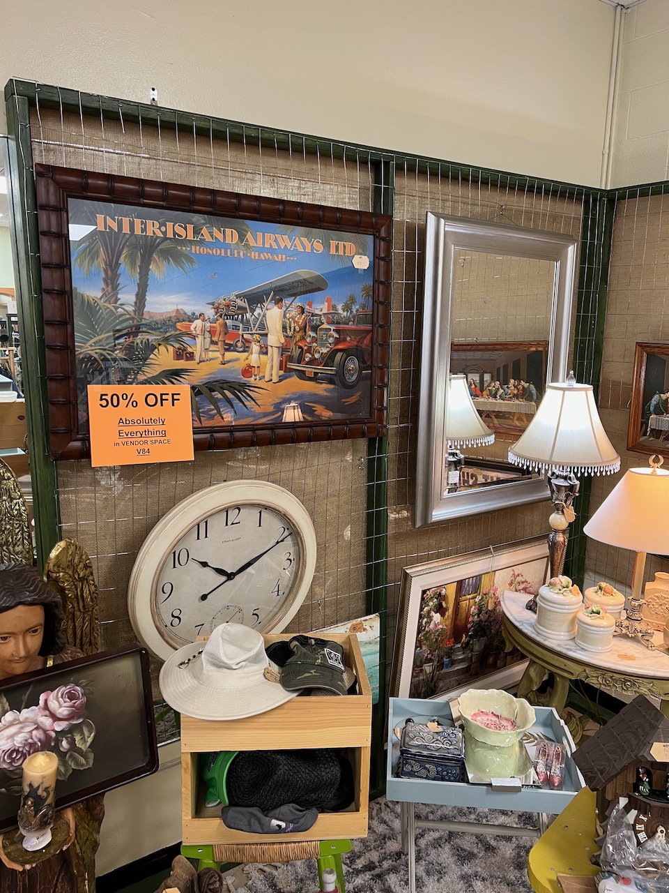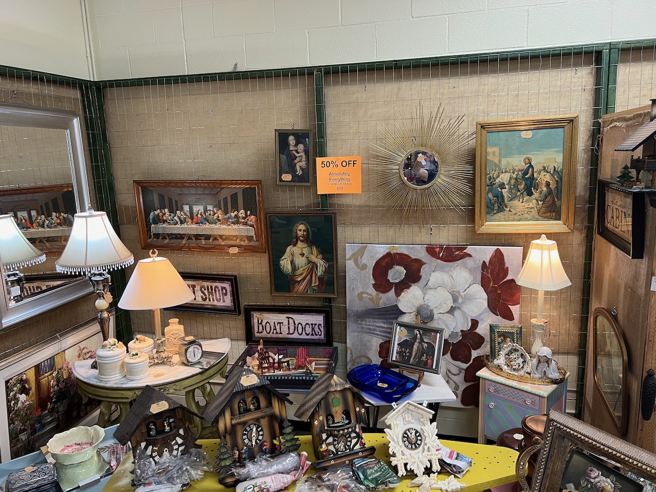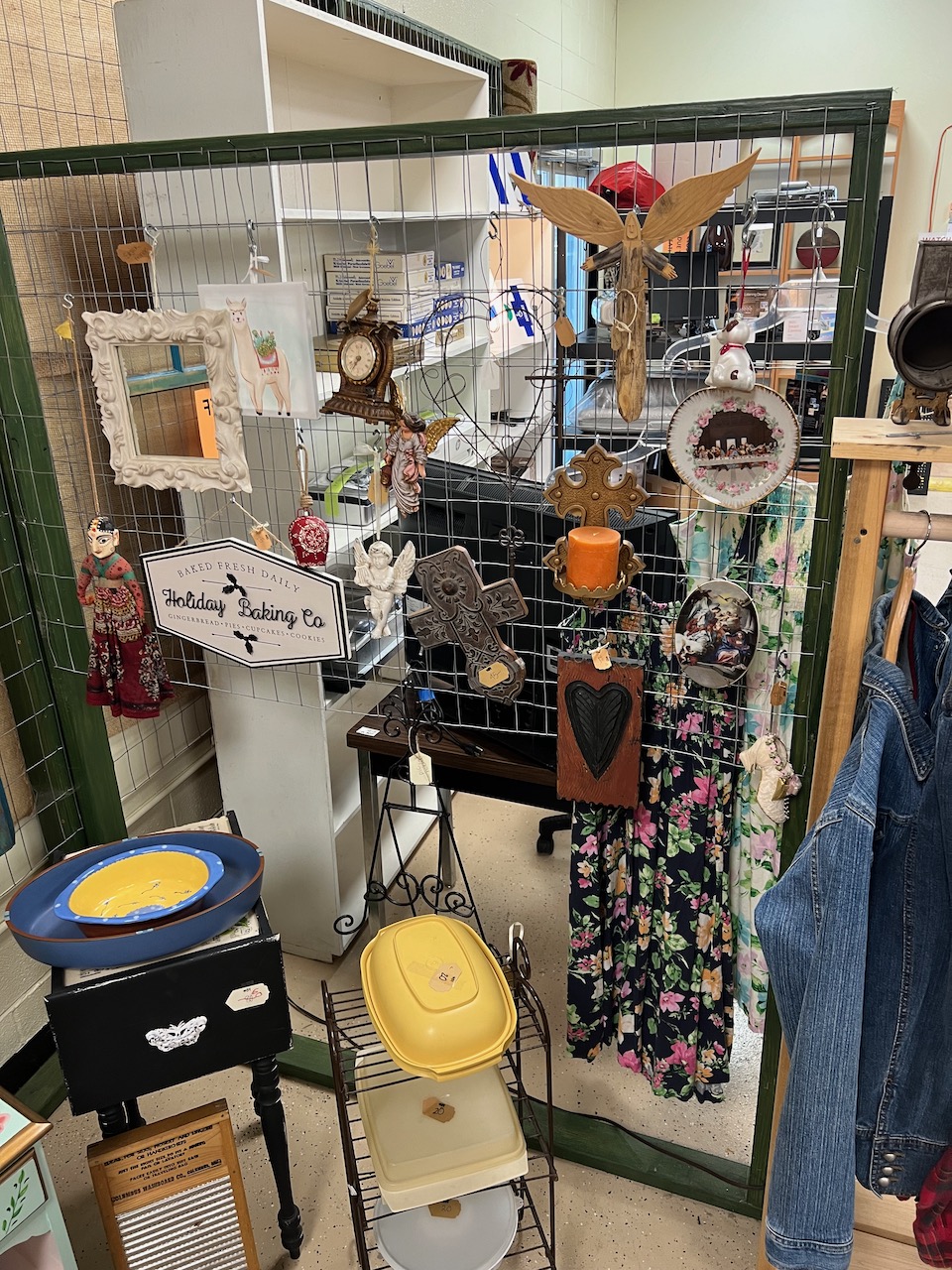 Used as dividers between vendor booths. Wire mesh provides flexible means to hang items for display.
